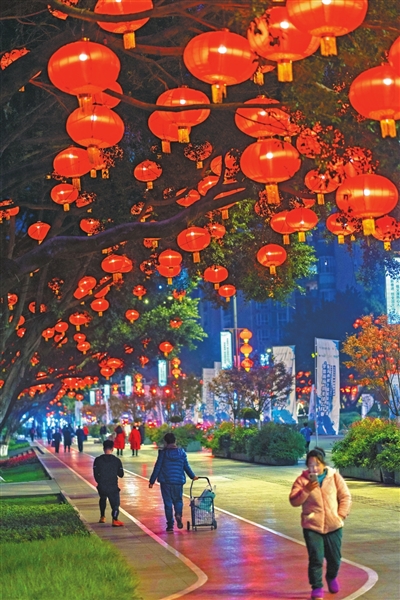 夜幕降临,华灯璀璨。随着元旦节临近,我区大街小巷张灯结彩,通过安装灯串、灯笼、中国结、小品及可回收循环利用投影灯等形式,让市民们提前感受到了浓浓的节日氛围。