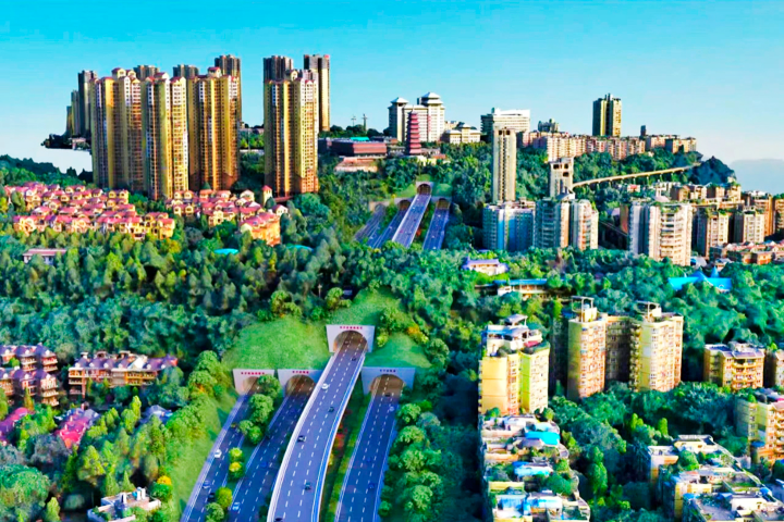 陶家隧道项目是快速路五横线穿越中梁山的重要节点工程,全长约13.5公里,线路整体呈东西走向,起于九龙坡区一纵线陶家立交,途经陶家镇,以特长隧道形式穿越中梁山,经跳磴、小南海等片区,终点接大渡口区快速路二纵线李家湾立交。