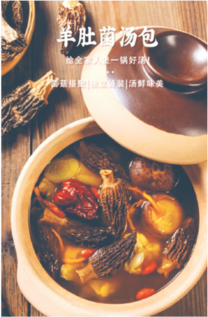 重庆辽宇食品有限公司生产,巴山干货使用农户采摘鲜羊肚菌,并将其晾晒制保存,然后用干菌做成汤包,味道鲜美,深受大家喜爱。