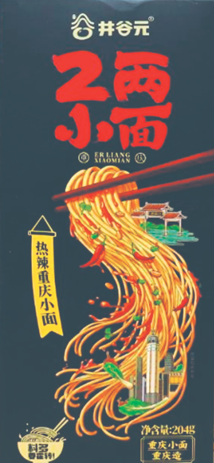 重庆井谷元食品科技有限公司生产,该产品选用半干面,搭配了超大分量油辣子,并配有酱油汁、涪陵榨菜、花生碎,还原了地道的重庆小面。