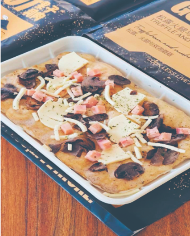 面向未来(重庆)科技有限公司生产,这款披萨的主要风味是黑松露和蘑菇的咸鲜风味,每一口都超满足。