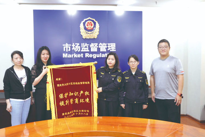 “太感谢你们了,为我们解决了企业发展过程中的知识产权难题,帮助我们维护了企业的合法权益。”10月30日,重庆盎瑞悦科技有限公司相关负责人将一面“保护知识产权,提升营商环境”的锦旗送到了区市场监管局,高度赞扬了该局工作人员的办事态度和服务效率。