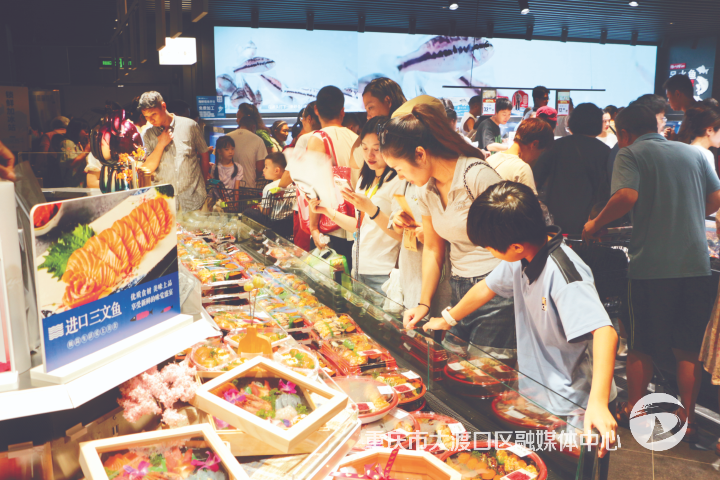 8月28日,淘小胖超市在大渡口万达广场正式开业。门店刚开启,等候的市民便有序进入,1万平方米的卖场瞬间被热烈氛围包围——从生鲜到零食,从日用品到特色熟食,上万个品类铺满各个货架,购物篮、购物车在各区域快速流动,随处可见市民专注挑选的身影。