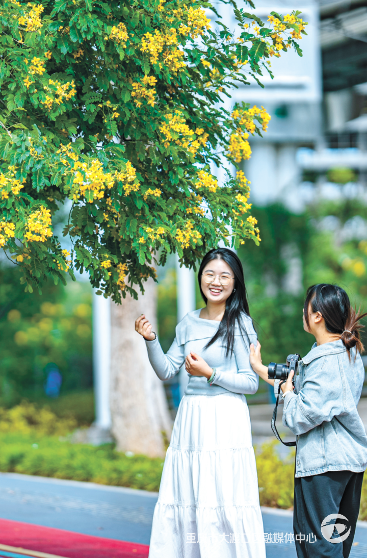 走在大渡口的背街小巷,仿佛踏入了一个繁花织就的童话世界。道路两旁,原本翠绿的枝叶渐渐染上了秋的色彩,而其间点缀的繁花,好似不甘寂寞的精灵,肆意绽放着生命的绚烂。那娇艳的桂花,花瓣层层叠叠,宛如少女羞涩的脸庞,在秋阳下泛着迷人的光泽;那淡雅的黄桷决明,或簇拥成团,或独自傲立,以一种从容的姿态诠释着秋的韵味。