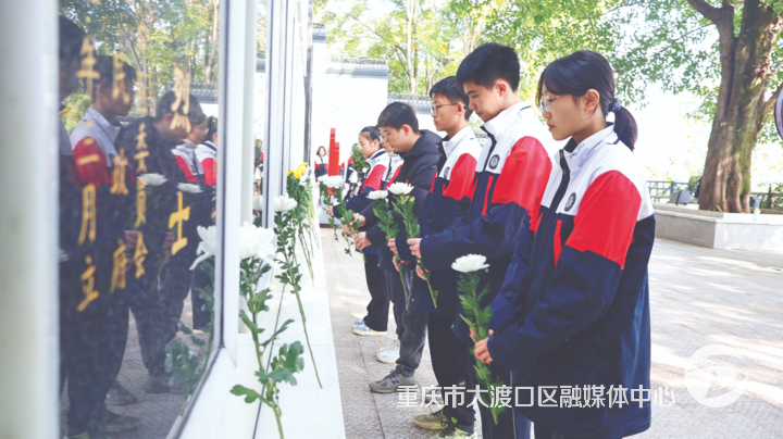 (全媒体记者 朱晨鹭 文/图)在重庆“11·27”烈士殉难76周年纪念日到来之际,大渡口西南大学附属中学教育集团(以下简称“大渡口西附教育集团”)在大渡口烈士陵园开展“缅怀护厂先烈 传承红色基因 践行教育初心”主题党日活动。