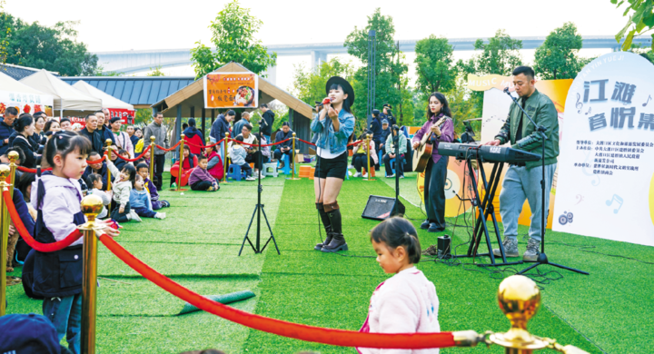 “还记得你说家是唯一的城堡,随着稻香河流继续奔跑”“乌溜溜的黑眼珠和你的笑脸,怎么也难忘记你容颜的转变”……近日,钓鱼嘴公园江滩边,悠扬旋律与江潮声交织共鸣——建胜镇“半岛音悦集”音乐文化活动在此温情开唱。这场以“建胜江滩起音浪,钓鱼嘴边听潮唱”为主题的活动,不仅是一次免费的文化盛宴,更成为建胜镇以“公园+文化”激活文旅资源、丰富市民生活、带动区域活力的生动实践。