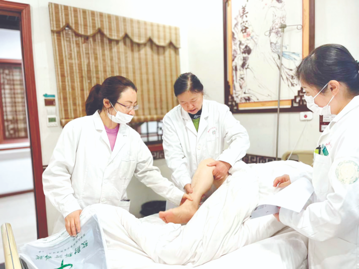 除此之外,春晖路街道社区卫生服务中心康复科的突出亮点,并非仅停留在硬件设施的升级上,更体现在其拥有一支实力强劲、经验丰富的优质医疗团队。目前,康复科配备医护人员14名,高级职称者有4人,中级职称者5人,还有3名重庆市名中医常驻坐诊,人才梯队搭建科学合理,专业实力不容小觑。在这里,每位患者的康复训练均在专家团队的全程指导下进行,确保每一份康复方案都科学、安全、高效。重庆市基层名中医袁忠玉擅长神经康复与针灸结合疗法,他分享道:“我们曾为一位中风后遗症患者制定了一套融合中医针灸、中药内服调理与现代康复训练的综合方案。经过三个月系统治疗,患者从需人搀扶行走,进步到能够独立上下楼梯。”
