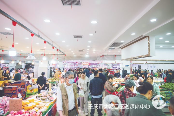 与重庆万吨冻品交易市场的规模化供应不同,九宫庙农贸市场凭借浓浓烟火气赢得市民喜爱。走进市场,生鲜果蔬、粮油干货应有尽有,商户的吆喝声与市民的询价声此起彼伏,年味十足。市场负责人称:“如今日均人流量最高超1万人次,现场设有220余个摊位。”