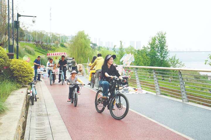 大滨路沿线也成为亲子家庭踏青游玩的热门打卡地。一边是滚滚长江,一边是满目绿意,滨江步道上随处可见亲子游玩的身影。“妈妈,这里风景太美了,快帮我拍张照!”来自渝中区的李女士带着孩子们在大滨路的花海旁拍照,一家人还在江边搭起天幕,铺上野餐垫,分享美食、闲话家常。