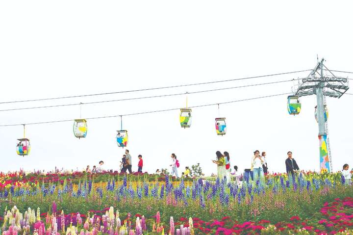 记者在现场看到,园内风铃花、满天星、黄金菊等竞相绽放,赤、黄、白、紫错落交织、相映成趣。花香伴着山间清风,令人心旷神怡。据悉,春假、清明期间,云上田园日均接待游客超4000人次。