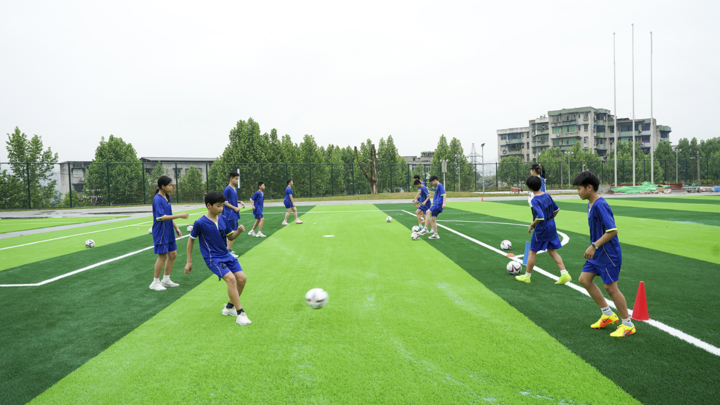 学校组建班级代表队24支,其中男队23支共169人,女队1支共24人。每个班级全年参与比赛场次不少于10场,通过校内联赛和外部赛事相结合,积极推动学生广泛参与足球运动,锻炼学生团队协作能力和体育竞技精神。同时,学校配备专业足球教练团队,包括中国足协D级教练员、C级教练员各1名,并建成2925平方米高标准人工草坪足球场地,为学生提供安全舒适的运动环境和专业规范的教学训练保障。