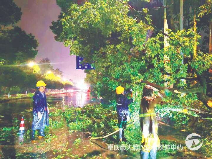 4月19日晚,大渡口区出现雷雨大风天气,最大累计降雨量45.6mm,最大小时降雨量35.3mm,最大风力等级9级。全区各部门单位、镇街闻“汛”而动,以“防范在前、抢险同步”的高效行动,筑牢防汛安全屏障。