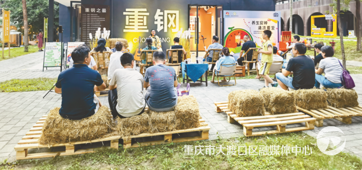 在大渡口区委社会工作部指导下,沪汉社区党委联合孝诚社工,从居民需求出发破题,通过多场居民议事会,邀请老住户、年轻白领、商户代表共同梳理需求,最终催生了“知喜盒子”社区共创焕新计划。一组明快的集装箱在黄桷坡地上“长”了出来,打造为集茶饮休闲、艺术疗愈、职业沙龙于一体的复合空间。在这里,退休阿姨担任茶艺导师,手工达人开设非遗扎染课堂;青年创业者策划“咖啡故事会”,以产品记录社区变迁;手作市集等活动引导亲子家庭参与治理,构建起“老中青三代共融”的社区生态。
